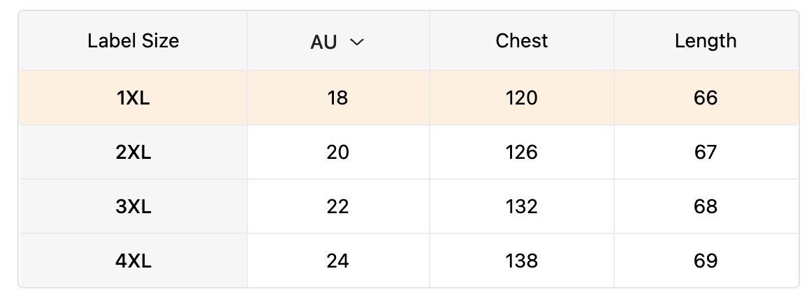 The following sizing charts apply to all our clothing items. Every piece in the Numenor Australia collection is manufactured to fit Australian sizing standards.