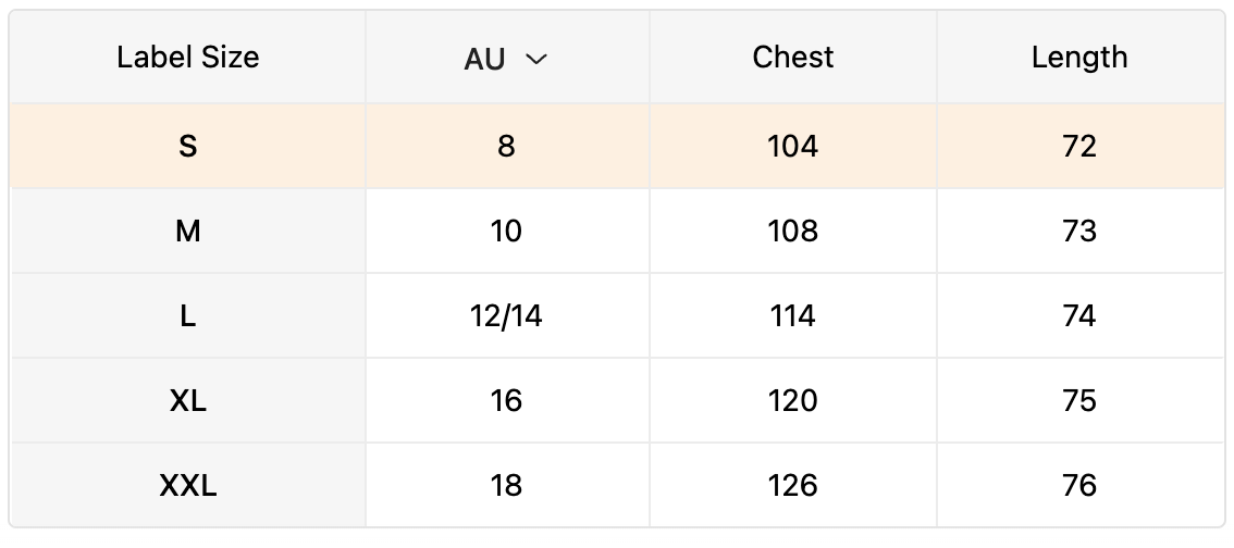 The following sizing charts apply to all our clothing items. Every piece in the Numenor Australia collection is manufactured to fit Australian sizing standards.